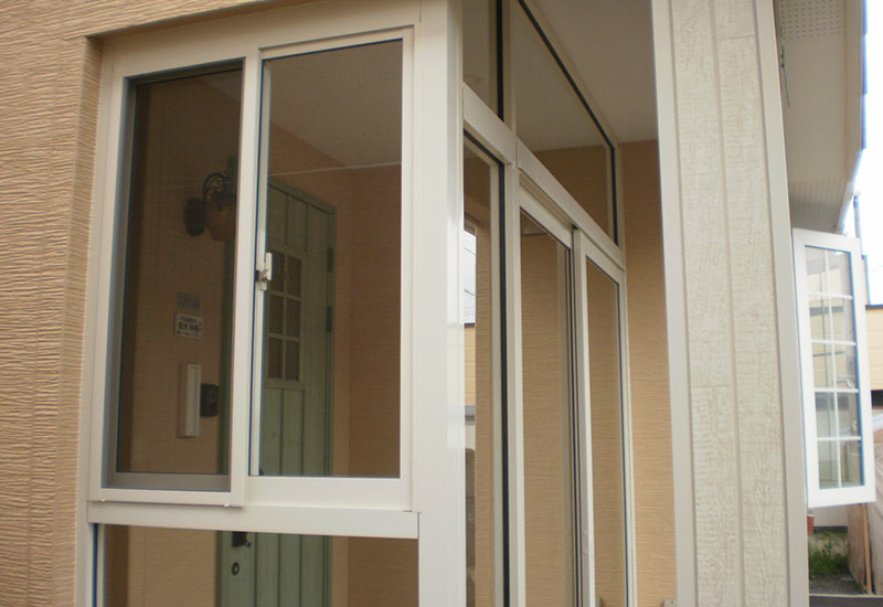 冬期間の 雪対策のために 玄関ホールを囲いたいとのことで、風除室セフターⅢを施工しました。 夏期間の暑さ対策のために、高窓網戸付きを取付しました。 色が、サッシの色と合っていて デザイン的にとても、満足して頂けました。