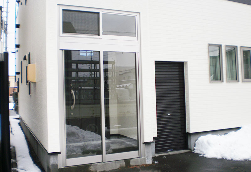 玄関ホールを囲いたいとの事で、相談を受け下レールの無い上吊り式の両引き戸をお勧めし施工しました。